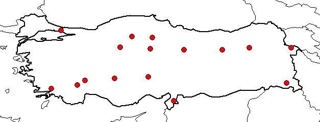 | Based on Vilayets: | İSTANBUL, IĞDIR, HAKKARİ, ÇANKIRI, AĞRI, ANKARA, BURDUR, ÇORUM, ERZİNCAN, ERZURUM, HATAY, ISPARTA, KONYA, MUĞLA, NİĞDE, SİVAS, YOZGAT|