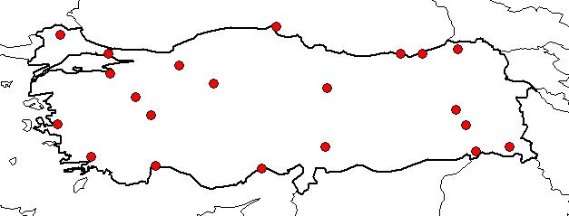 | Based on Vilayets: | BOLU, İSTANBUL, HAKKARİ, ŞIRNAK, BİTLİS, AFYONKARAHİSAR, AĞRI, ANKARA, ANTALYA, ARTVİN, BURSA, İÇEL, İZMİR, KIRKLARELİ, KÜTAHYA, KAHRAMANMARAŞ, MUĞLA, MUŞ, RİZE, SİNOP, SİVAS, TRABZON|