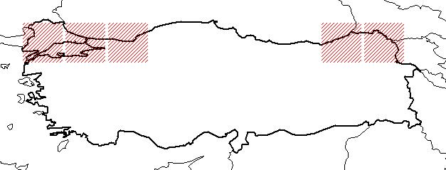 Türkiye dağılımı : KB. Türkiye, KD. Anadolu