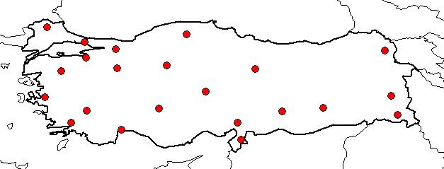| Based on Vilayets: | OSMANİYE, İSTANBUL, KARS, HAKKARİ, KASTAMONU, ADIYAMAN, ANKARA, ANTALYA, BALIKESİR, BURSA, DENİZLİ, DİYARBAKIR, ESKİŞEHİR, HATAY, İZMİR, KIRKLARELİ, KONYA, MUĞLA, NEVŞEHİR, SAKARYA, SİVAS, VAN|