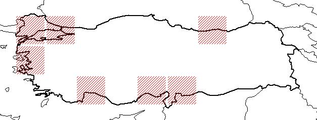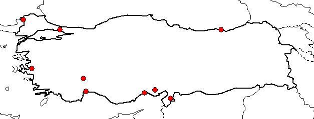 Türkiye dağılımı : Trakya, KD., B. ve G. Anadolu