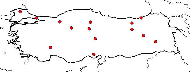 Türkiye dağılımı : KB. Türkiye, Karasal ve G. Anadolu