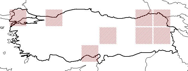 Genel Dağılımı | : Avrupa, Kırım (Ender Olarak), Balkanlar, Kuzeybatı Afrika, Lübnan, Suriye