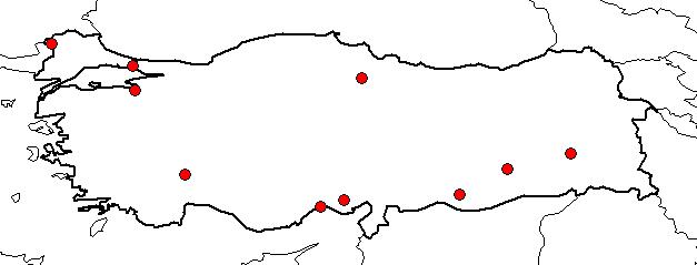 Türkiye dağılımı : KB. Türkiye, B., G. ve D. Anadolu