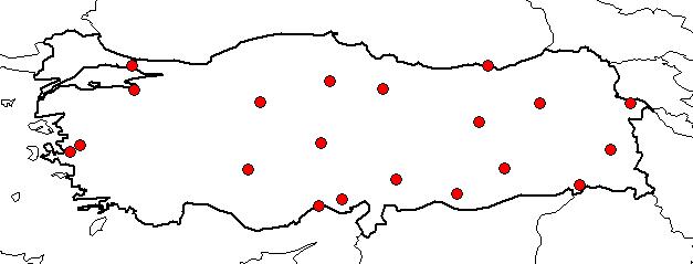 | Based on Vilayets: | ADANA, İSTANBUL, IĞDIR, ŞIRNAK, ANKARA, BURSA, ÇORUM, DİYARBAKIR, ERZURUM, İÇEL, İZMİR, KONYA, MANİSA, KAHRAMANMARAŞ, NEVŞEHİR, TOKAT, TRABZON, TUNCELİ, ŞANLIURFA, VAN|